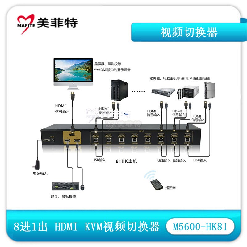 美菲特M5600-HK81 切换器是一款HDMI接口的KVM切换器,是八路输入,1路输出的设备,可以八台电脑共享一套键盘/鼠标/显示器信号的HDMI KVM切换器。该切换器通过一组键盘/鼠标/显示器可手动控制8台主机,并且不会出现传统手动切换器切换后出现的电脑死机,显示器黑屏,键盘鼠标不好用等不良问题。此切换器也是目前最经济的桌面式USB KVM解决方案,强大的性能是桌面式KVM的完美实现并且能让您充分利用空间