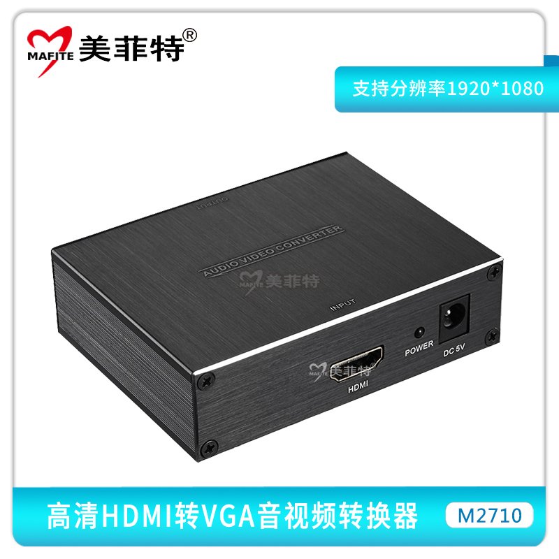 美菲特M2710转换器是一款专业的音视频高清转换器,HDMI转VGA带音频分离,1路HDMI输入,转换成1路VGA输出+1路3.5音频/光纤音频输出,支持HDMI1080P输入,输入与输出一致(点对点),兼容HDCP,画面逼真,还原了图像原有的面貌,让你随时享受高清的影音盛宴。