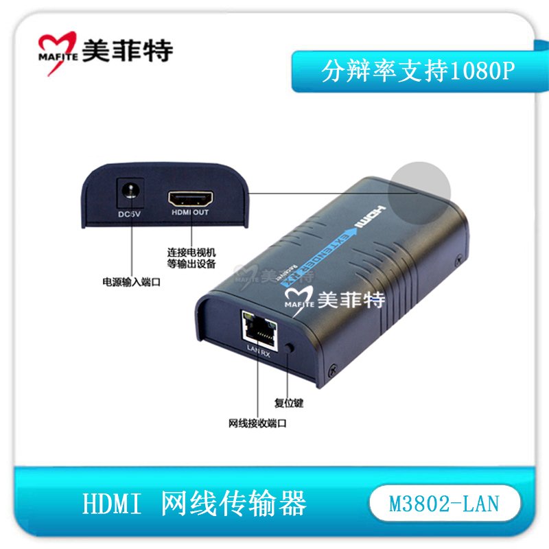 美菲特M3802-LAN可以实现一个发射器多个接收器,理论高达253个接收器。可以从1-253分配器自由搭配。实现HDMI253分配器的功能。美菲特M3802-LAN支持全高清视频传输,FU HD 1920*1080全高清传输。让您在尽情享受长距离高清生活。