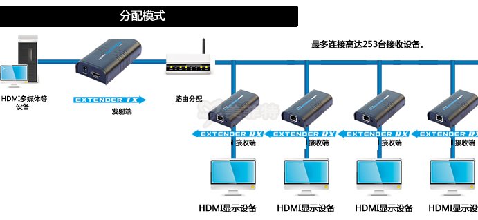 2. 通过一条网线传输高清信号,取代了昂贵的HDMI线,可以用于家庭影院,投影机展览,电视教育等需要信号覆盖或者长距离传输的场合。