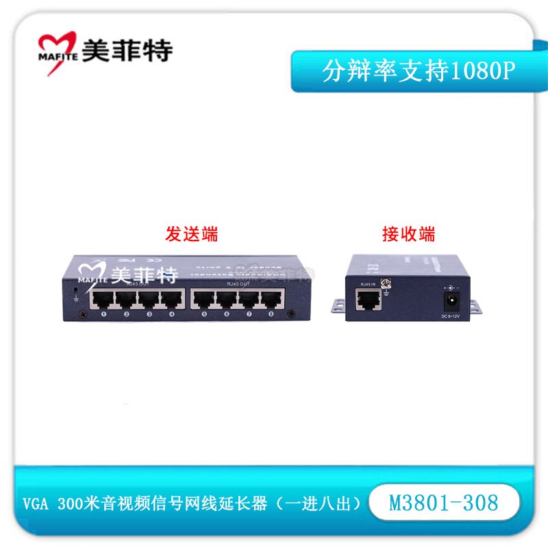 300米VGA网线延长器 一进八出 1台M3801-18加8台M3801-300接收端