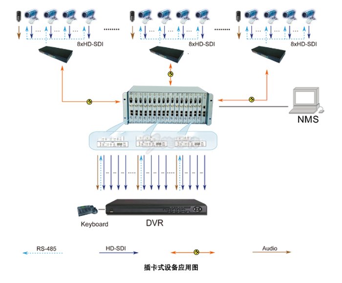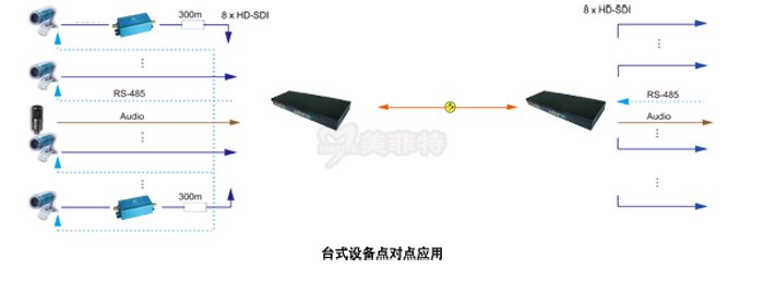 美菲特M3803SDI-8分为台式设备和插卡式设备,台式设备采用体积小巧的台式机设计,分为光发射机和光接收机,实现8路视频信号在光纤上的传输;插卡式设备作为集中式HS-SDI光接收设备,采用标准19英寸、4U插箱设计的RV600C机箱,可插入16张HD-SDI光接收盘(支持热插拔),与最多16个台式光发射机配合使用。同时提供1张网管盘,因此美菲特M3803SDI-8插卡式设备支持基于RS232简单CLI命令行管理方式和基于SNMP_V1/V2协议的智能管理平台,可以监控和分析多种设备状态信息,帮助用户快速发现和定位故障节点。