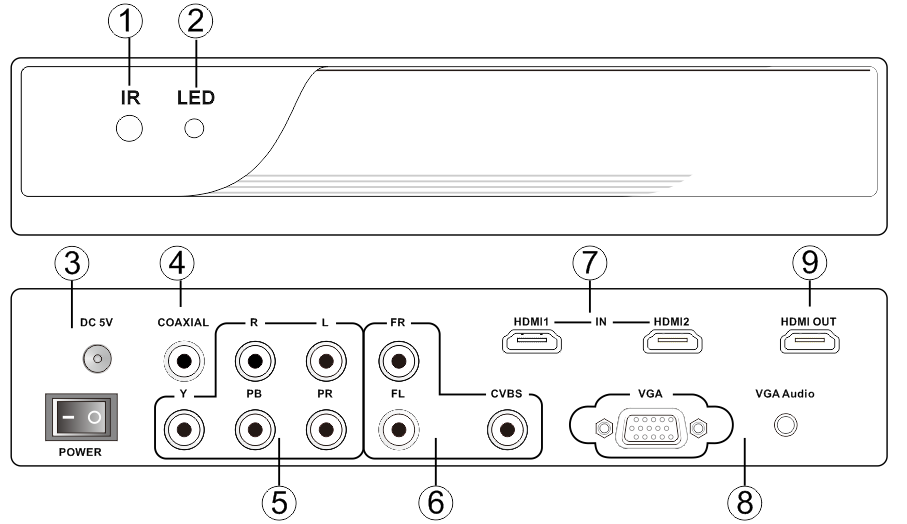 Part 7. HDMI信号输入:连接HDMI来源如DVD播放器/蓝光播放器的视频和音频信号转换。